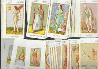 Un dato importante es que algunos de los naipes presentes en las cartas del tarot Mantegnacorresponden a los arcanos mayores en los otros tipos de tarot.